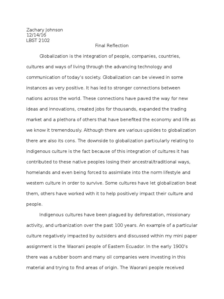 Example of reflection paper about globalization. Check spelling or type a new query. Maybe you would like to learn more about one of these? We did not find results for: